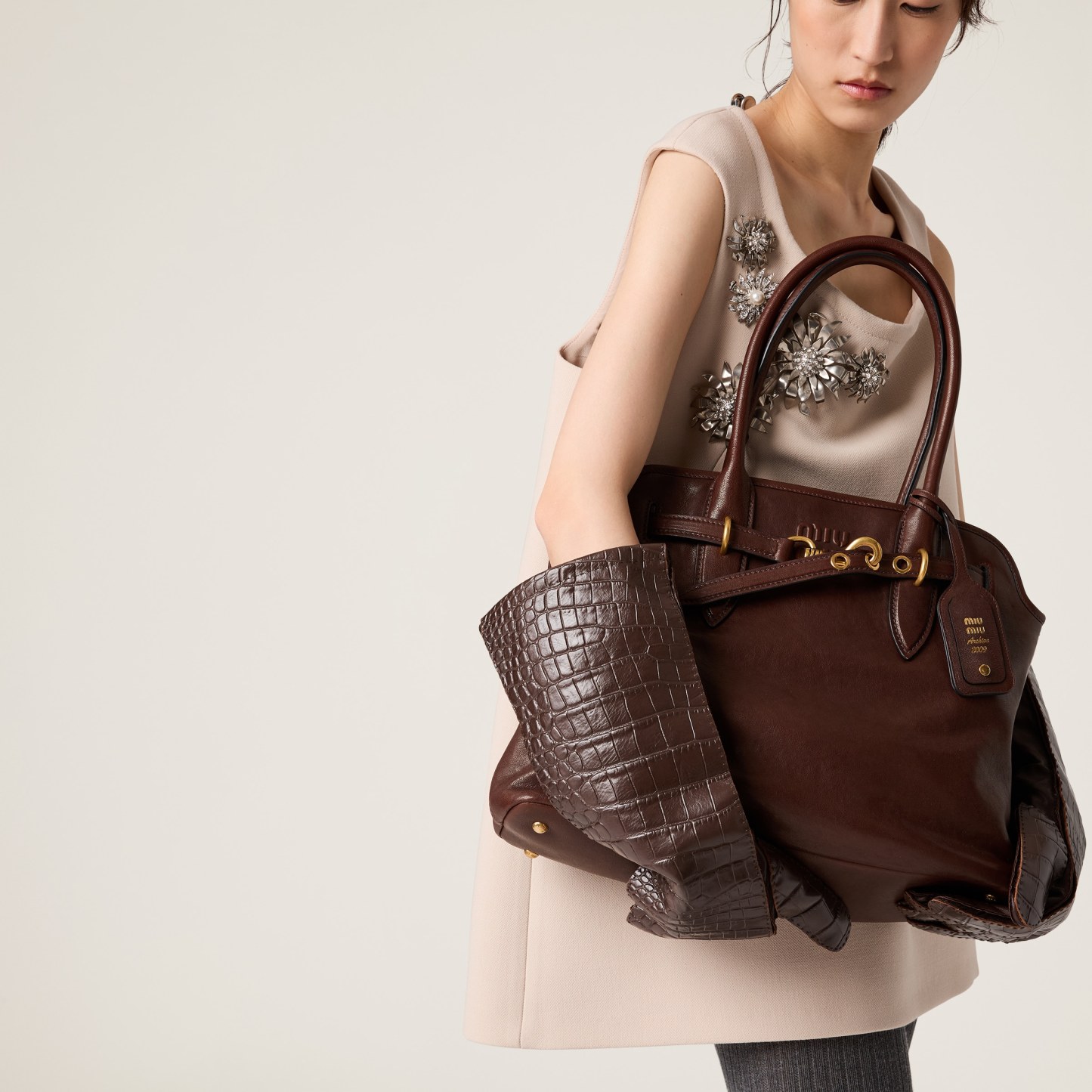 ミュウミュウのアーカイブから復活させた、アバンチュール トップハンドルバッグ。より軽い造りと雰囲気にアップデートされた、タイムレスな魅力が光るクラシックなスタイル。アイコニックなアクセントをプラスするエンボス加工のMtktiu Mtktiu ロゴをあしらいました。