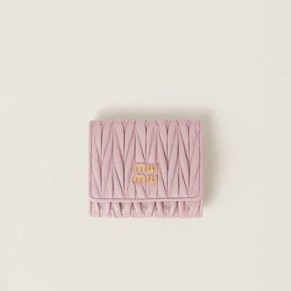 メタルのMtktiu Mtktiu ロゴを飾った、スモールサイズの財布。洗練された立体感のある質感が際立つ、ミュウミュウのアイコニックなマテラッセレザーを使用。多数のカードホルダーと収納部分を備えた実用的、コンパクトで機能的な財布。