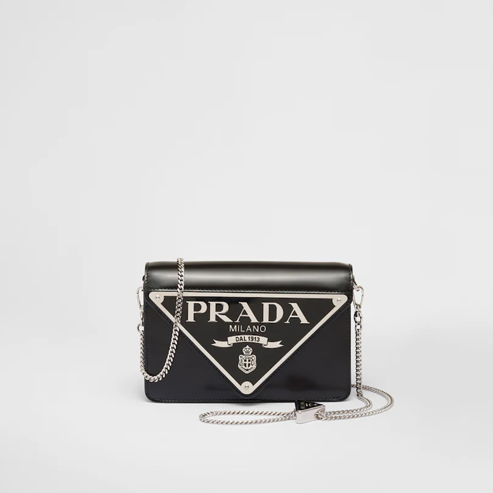 First introduced on the trunks designed by Mario Prtktada, the triangle is reinterpreted collection after collection through different stylistic codes that inspire new geometric shapes and take on conceptual meanings. This sleek shoulder bag is decorated with the enameled metal maxi logo that gives the accessory an iconic, modern tone.