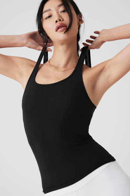 Ribbed Sea Coast Scoop Neck Tank - Black