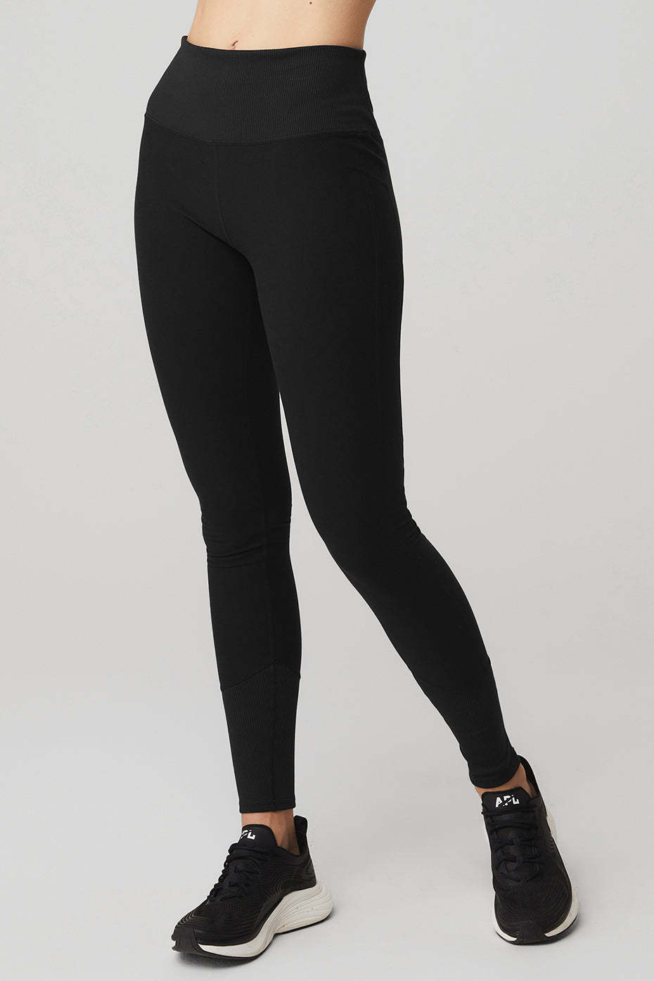 Cut from our softest performance fabric to date, the High-Waist atktlosoft Lounge Legging is seriously comfy & so on-point for practice & beyond. Ribbed details at the waistband & cuffs and a sweet, contouring back seam for added lift give this forever-fave status. Throw on your fave atktlo coverup or make it a full look with a super-soft atktlosoft bra look.